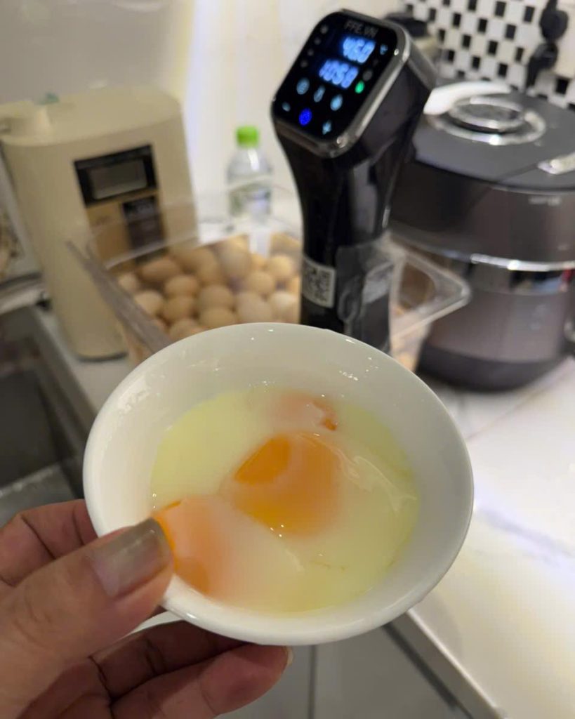 - Alt text gợi ý: Trứng lòng đào nấu Sous Vide mềm mịn